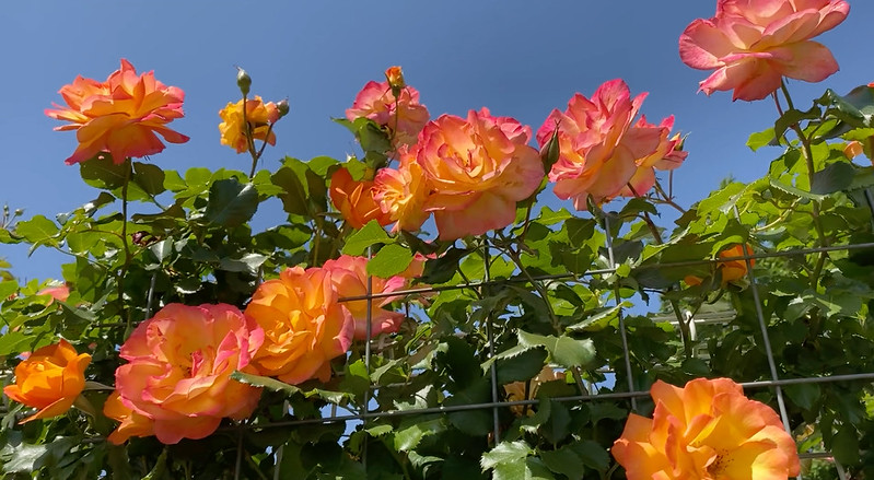 水平に誘引よりも、下の方へ空いているところへ誘引するのがたくさん花を咲かせるコツです。
